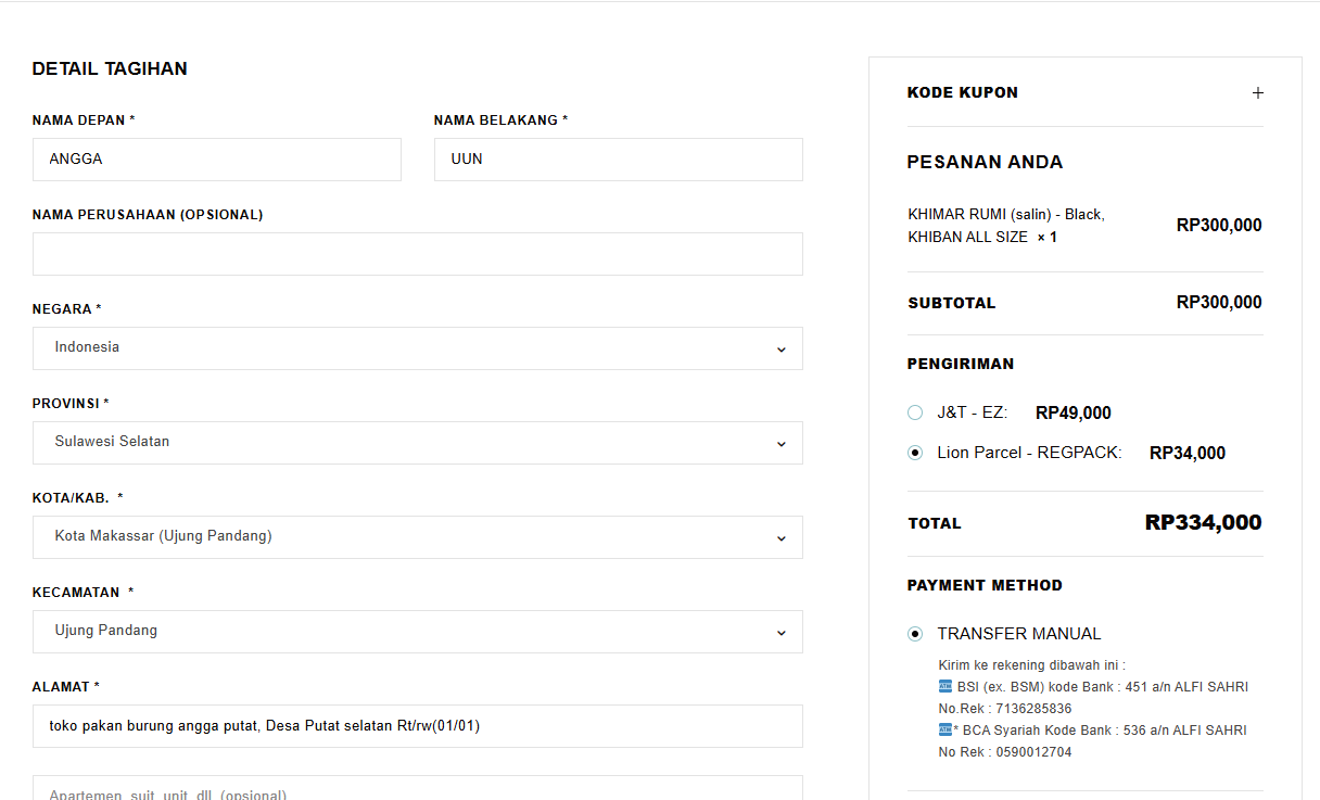 Ini jika kami checkout di website dengan plugin ongkos kirim tonjoo harga nya beda 10rb, berat nya sama sama 1KG