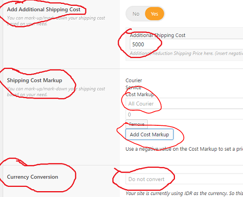 2. Shipping Cost Markup = TIDAK BISA DIKLIK